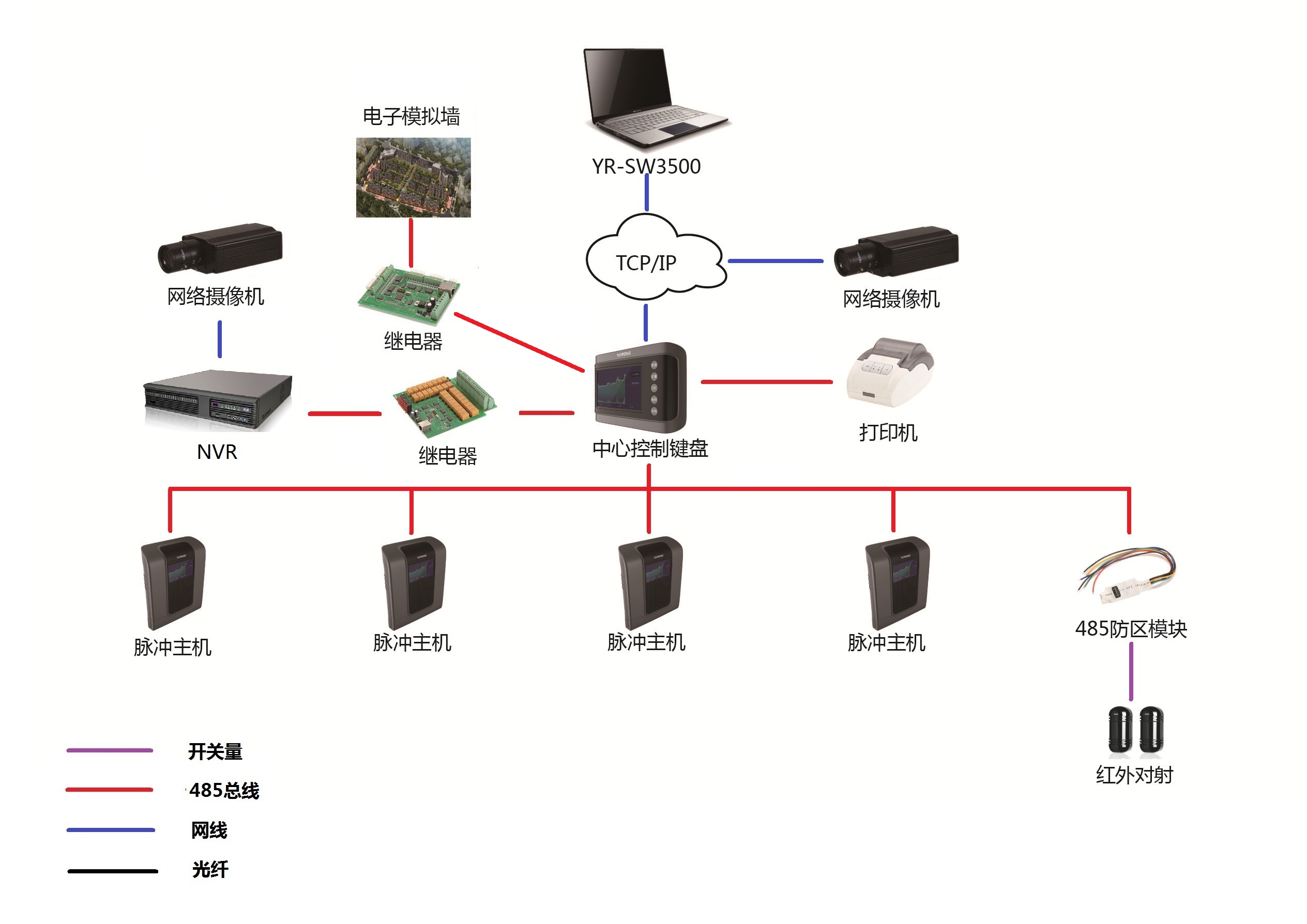 普通型脈沖圍欄主機+中心控制鍵盤/網(wǎng)絡(luò)單機控制軟件+網(wǎng)絡(luò)平臺控制軟件SW4000
